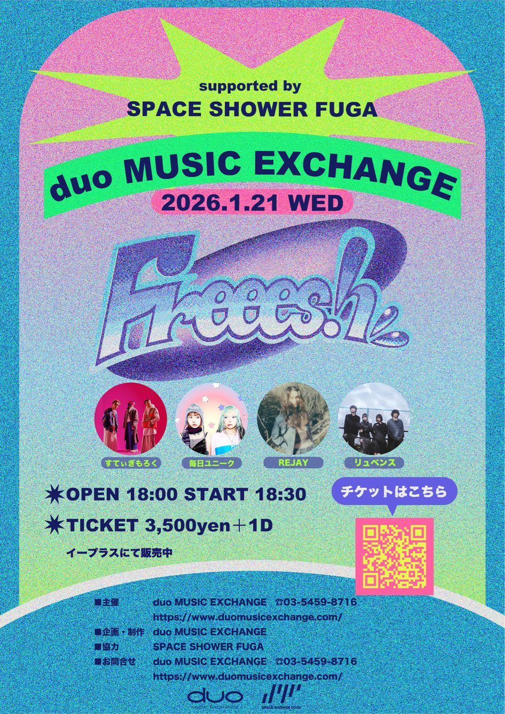 2026/1/21(水)に開催される「Freeesh 」に、リュベンスの出演が決定しました。